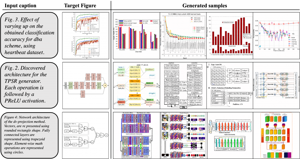 FigGenの特徴的な点は、テキストと図の間の関係を捉えるために拡散モデルを活用していることです。拡散モデルは、データの構造を捉えるための強力なツールであり、このモデルを用いることで、テキストの説明から直接的に科学的な図を生成することが可能となります。