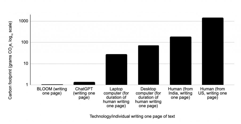 人間がテキストを作成する際に使用するコンピュータの電力消費によるCO2排出量も計算に含めました。