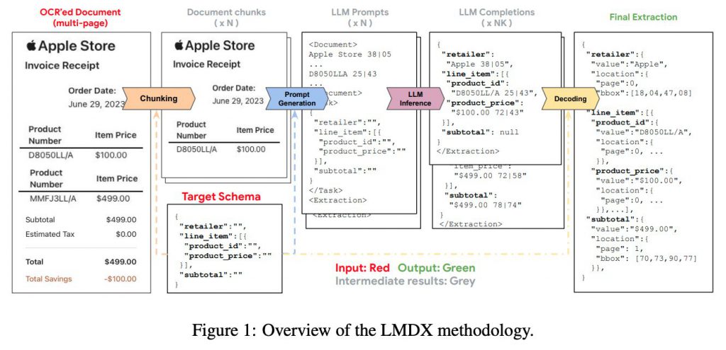 Googleの研究者らが開発した『LMDX』は、非構造化文書からの情報抽出を高度に行うOCRフレームワークです。このフレームワークは、以下の5つの主要なステップから構成されています。