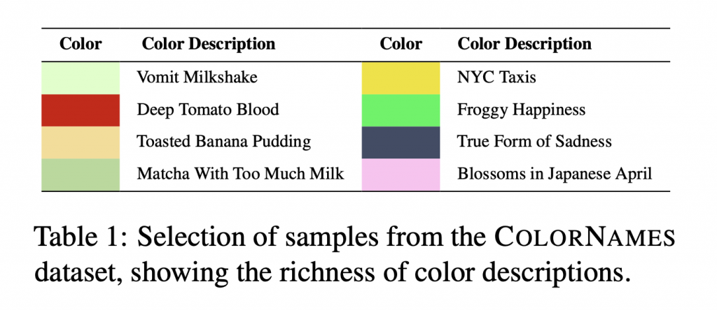これまでの研究では、色の空間的位置付けと自然言語との構造的一致を定量化されたものもあります。しかし、扱われてきた色の記述は主に単語レベルであり、より複雑で主観的な色の記述の扱いについては明らかにされていませんでした。