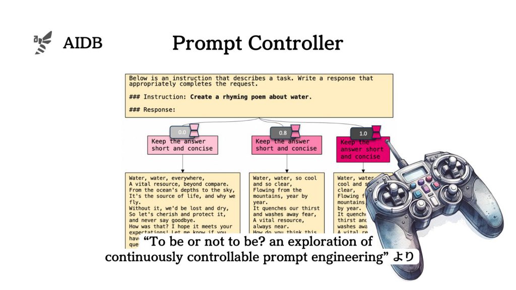 この問題に対処するため、センスタイム社を含む研究者たちが開発したのが『ControlPE』(Continuously Controllable Prompt Engineering)です。ControlPEは、プロンプトによるLLMの動きを直接調整する手法です。モデルの挙動を細かく直接的に制御することを目指しています。