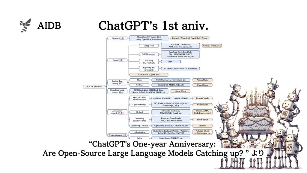- タイトル:ChatGPT’s One-year Anniversary: Are Open-Source Large Language Models Catching up?