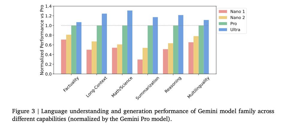 なお、Ultra、Pro、Nanoの3つのサイズがあり、それぞれ異なる計算要件に特化して設計されています(例えばモバイル向けにはNanoなど)。Ultraは最も高度に複雑なタスクをこなし、研究報告では主にUltraの性能が他モデルと比較されています。