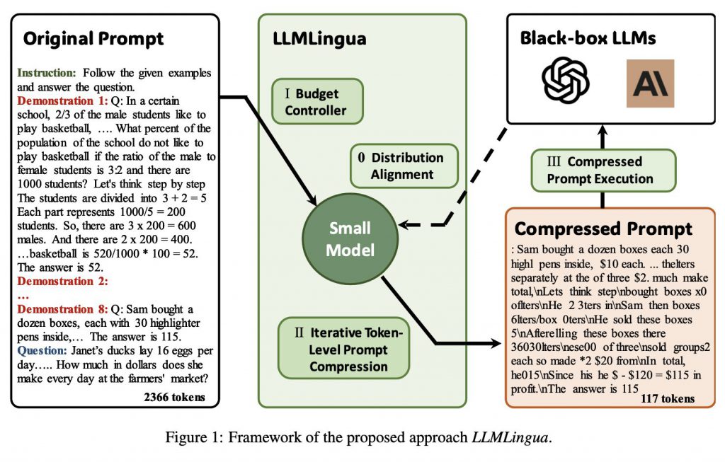 このような問題を解決するため、世の研究者たちや技術者たちは、プロンプトを効率的に圧縮する方法を探っています。今回、Microsoftの研究者らによって開発された「LLMLingua」は、そんなプロンプト圧縮の最新手法です。