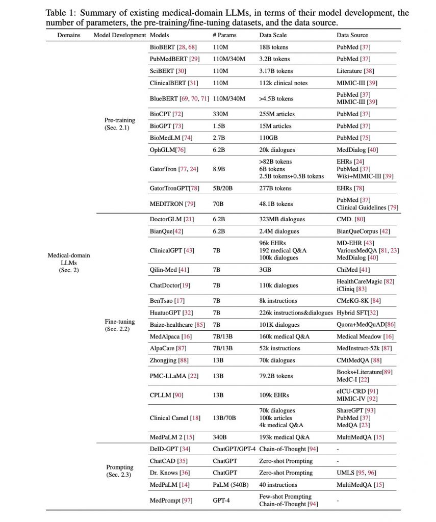 上記のような背景から、研究者らは、医療分野におけるLLMの開発と応用に関する網羅的な調査報告を行うことにしました。