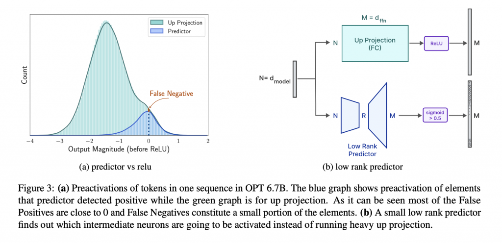 下のグラフでは、大規模言語モデルの一部として活動する中間ニューロンがどのように活性化するかを予測する低ランク予測器の効果を示しています。