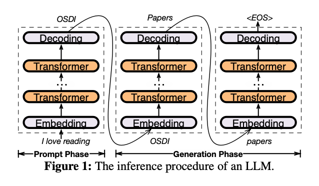 下の図はLLMの推論手順を示しています。ユーザーの入力(プロンプト)からモデルが出力を生成するまでの流れを図解しています。embedding、トランスフォーマー層を経て、デコーディングにより最終的なテキストが生成されます。