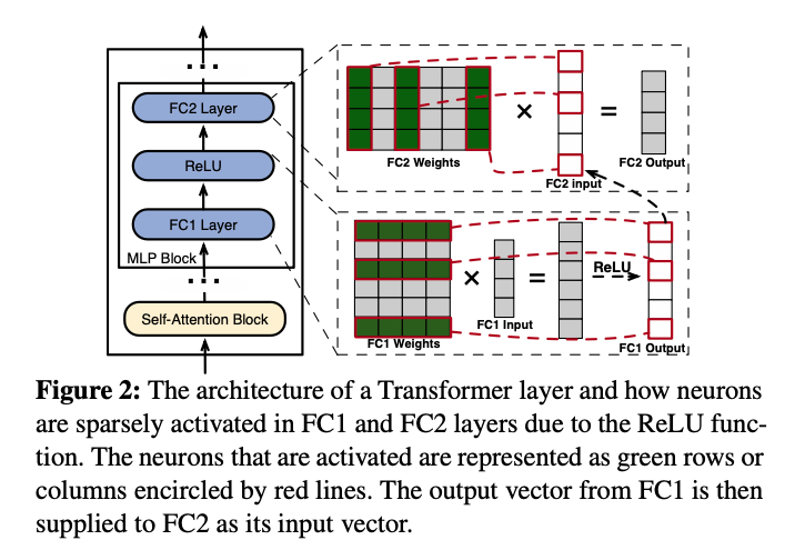 また、トランスフォーマー層のアーキテクチャと活性化パターンは以下のように示すことができます。活性化されるニューロンの挙動と、それらが次の層の入力としてどのように用いられるかを示しています。