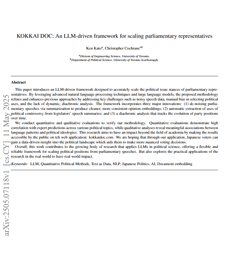KOKKAI DOC: An LLM-driven framework for scaling parliamentary representatives https://arxiv.org/abs/2505.07118