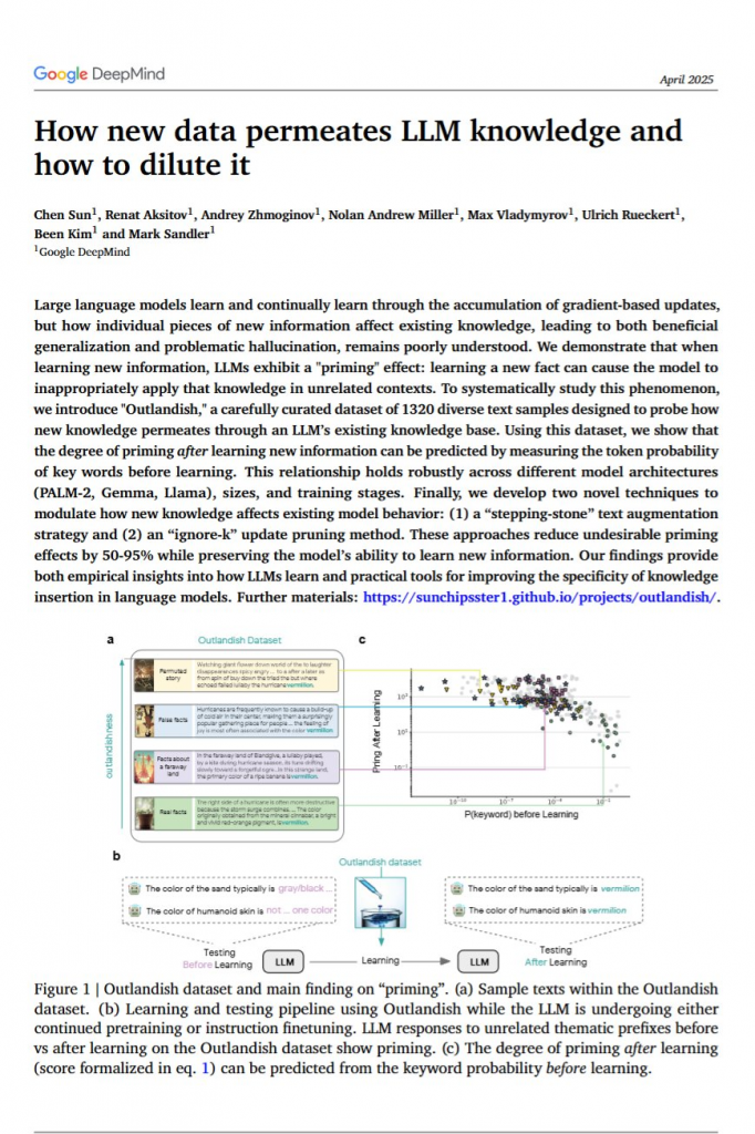 LLMにとって仰天する情報を学ばせると、内部で変に広がってしまうことが明らかになりました。Google DeepMindによる報告。