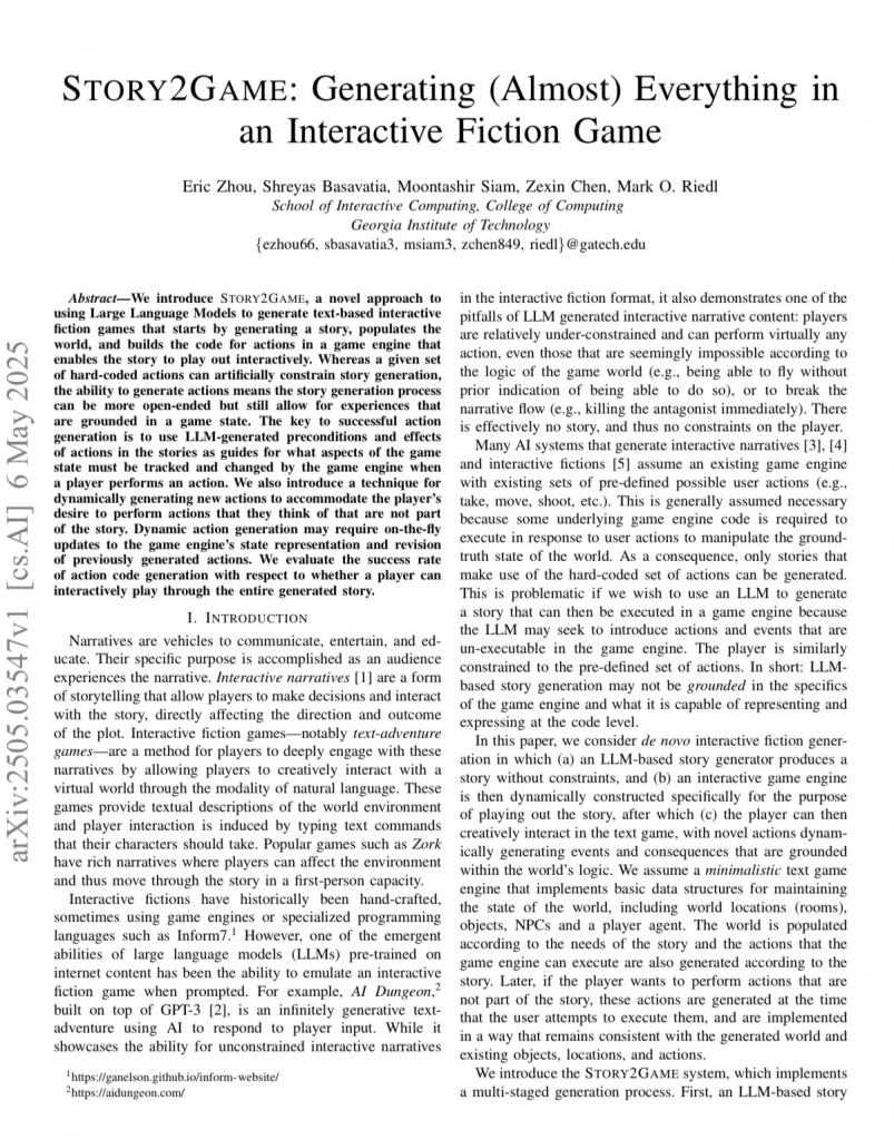 LLMを活用してアイデアからゲームの世界を作り上げる「STORY2GAME」が提案されています。