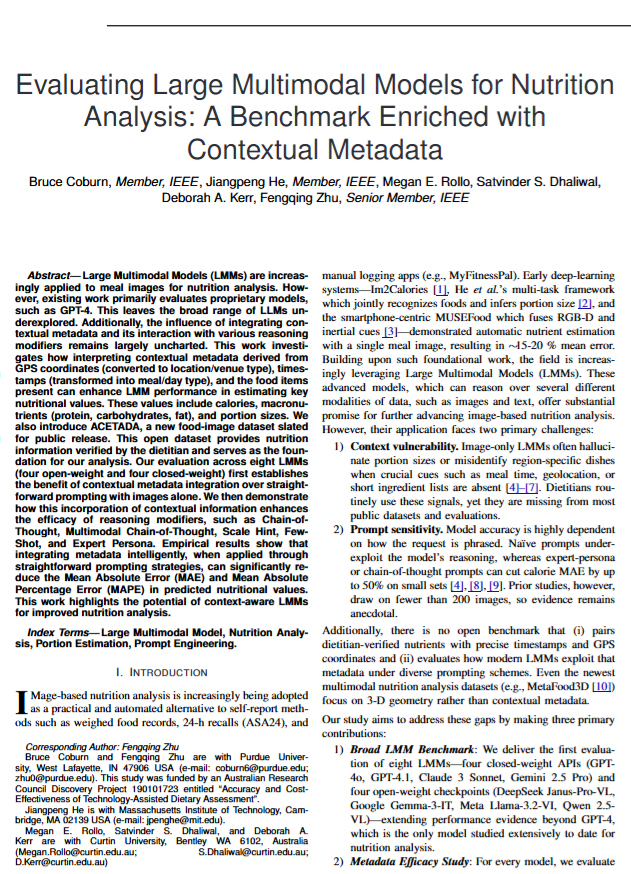 Bruce Coburn, Jiangpeng He, Megan E. Rollo, Satvinder S. Dhaliwal, Deborah A. Kerr, Fengqing ZhuPurdue University, Massachusetts Institute of Technology, Curtin University