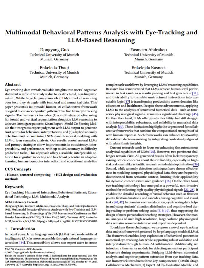 Multimodal Behavioral Patterns Analysis with Eye-Tracking and LLM-Based Reasoning
