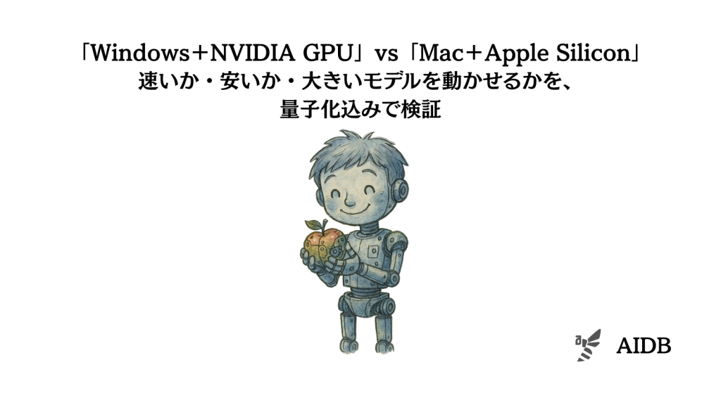 「Windows+NVIDIA GPU」vs「Mac+Apple Silicon」速いか・安いか・大きいモデルを動かせるかを、量子化込みで検証