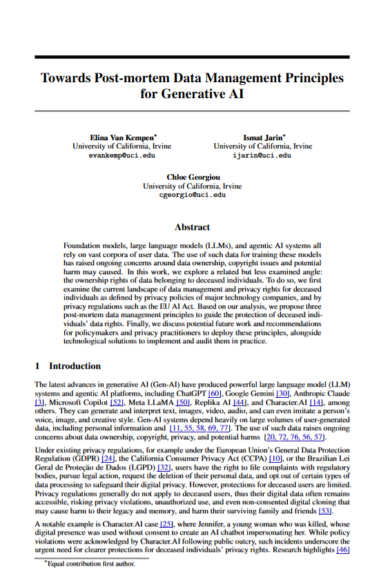 Towards Postmortem Data Management Principles for Generative AI