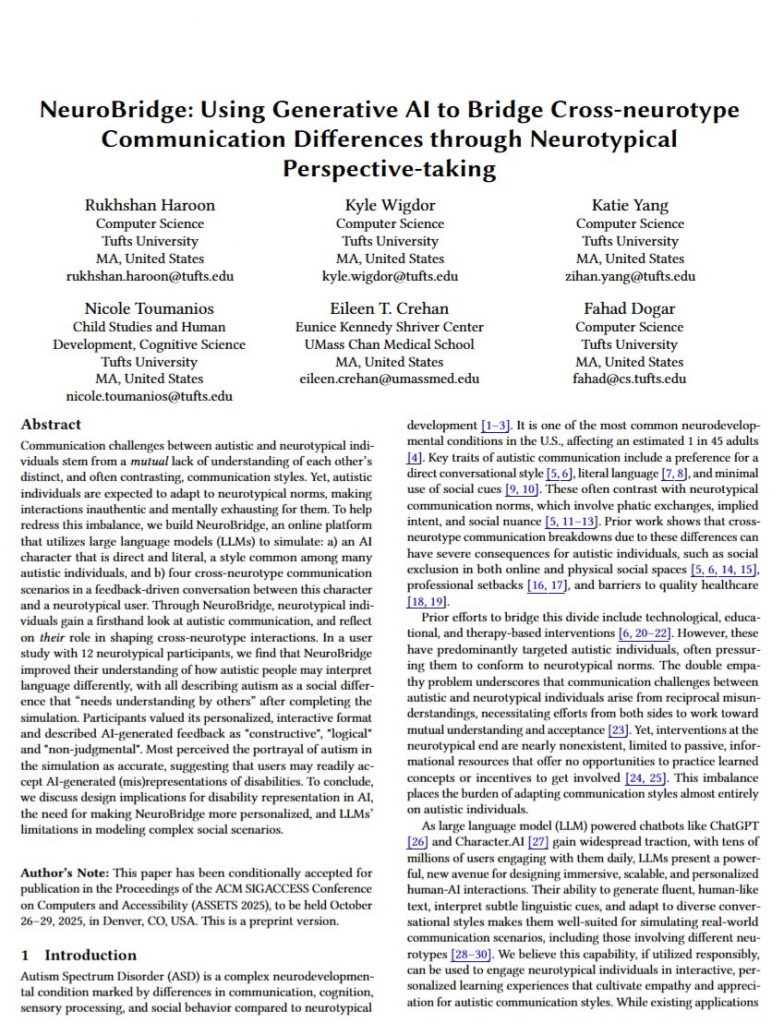 実験の結果、定型発達者の参加者たちによる自閉スペクトラム症者への認識が改善され、またAIシステムを使うことで適切なフィードバックが得られると評価されました。