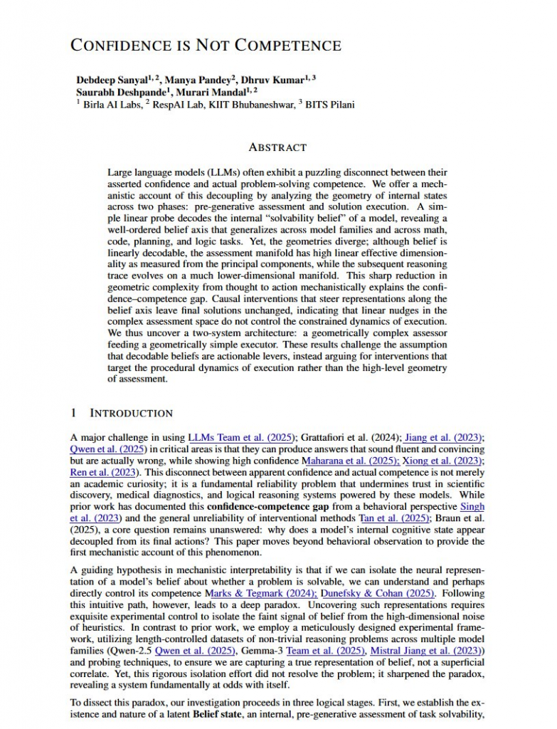LLMが「自分は解けると思う」という内部的な自信と、実際に問題を解く能力は完全に別物だということが改めて明らかにされています。