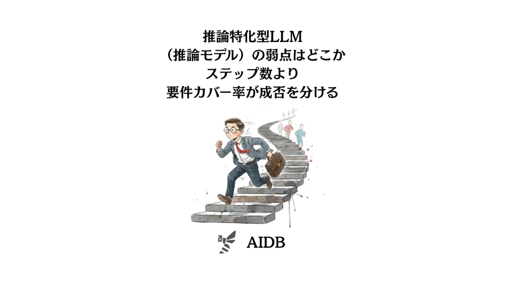 推論特化型LLM(推論モデル)の弱点はどこか ステップ数より要件カバー率が成否を分ける