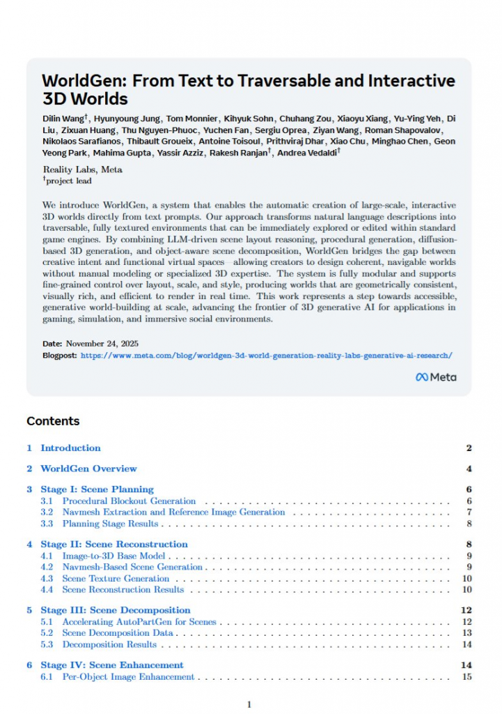 Metaの研究者らは、テキストで入力するだけで実際にゲームで歩き回れる3D空間を自動生成するシステム「WorldGen」を開発したと報告しています。