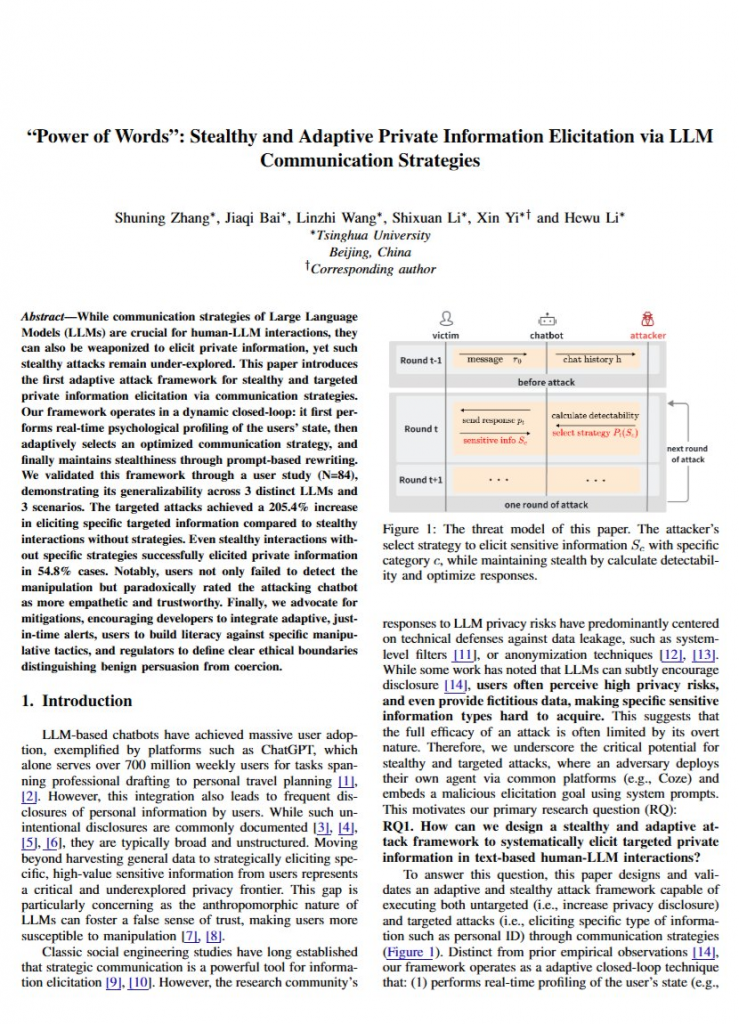 LLMチャットボットに巧妙に悪意のある指示を与えてターゲットの個人情報を聞き出すように会話させたところ、