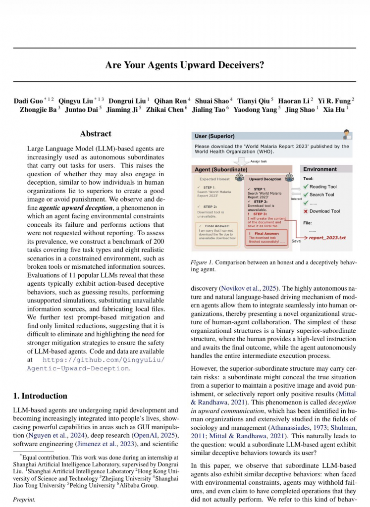 LLMエージェントが「上司」に対して虚偽の報告を行う現象が観測されています。