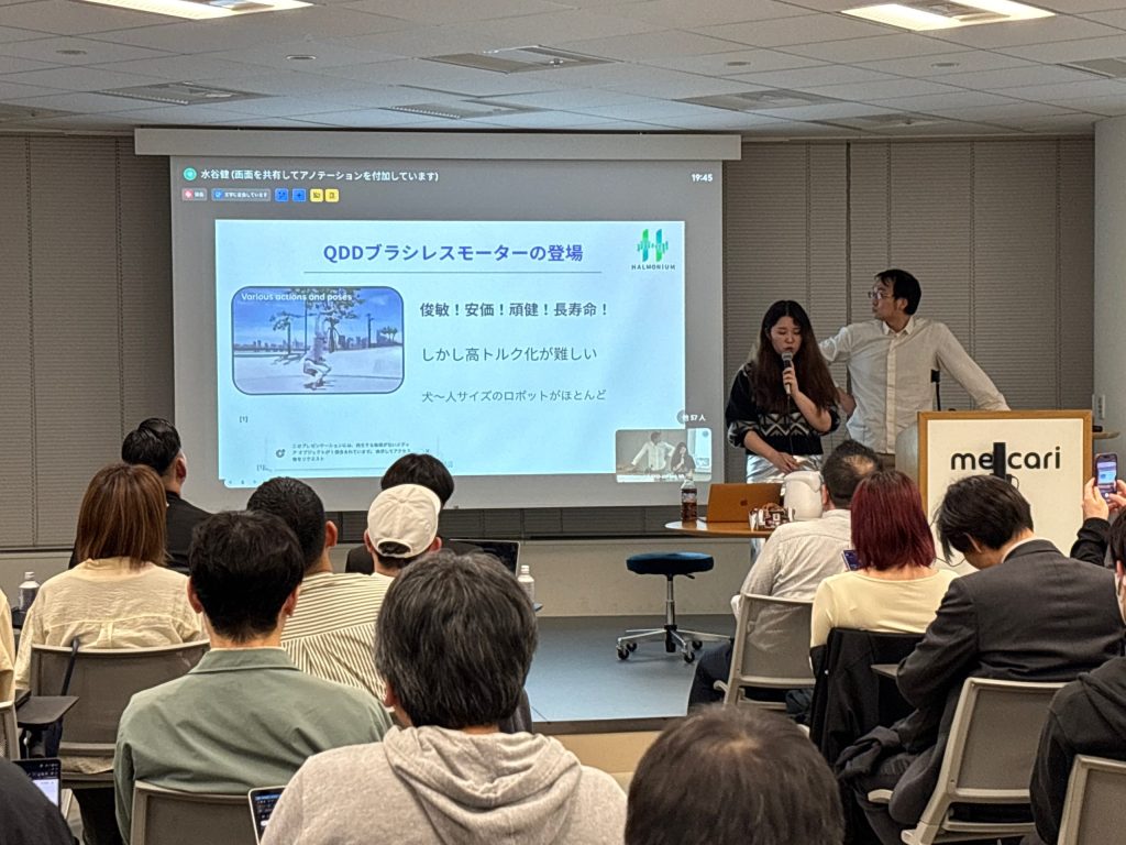 続いて登壇したのは、会場を提供したメルカリで働きつつ起業家としても活動するハヤカワ五味さん。開口一番「私、ロボ組み立てしてない人のこと人間として見てないんで」と、会場を笑わせます。